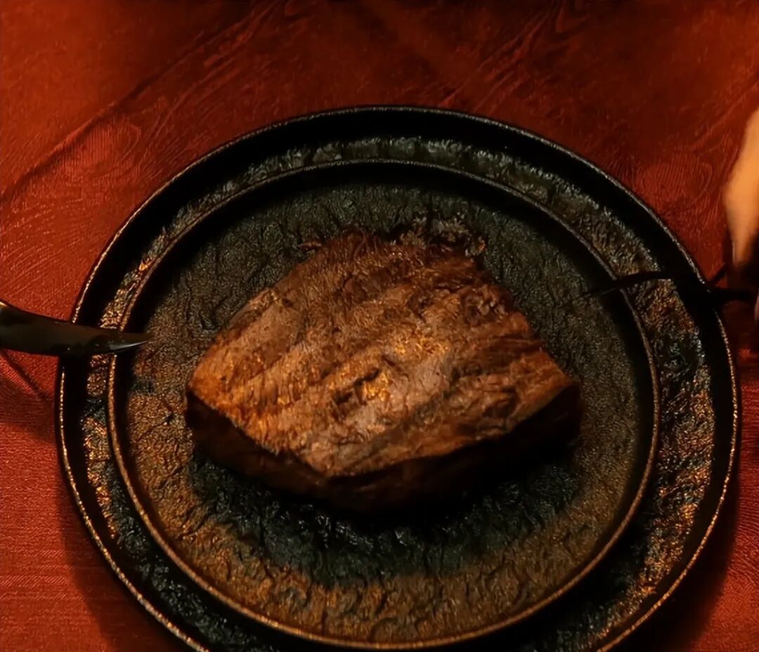 接着冷脸低头,嘴巴微微撇起,然后把刀叉往盘中一放,清脆的撞击声令人心中一颤。