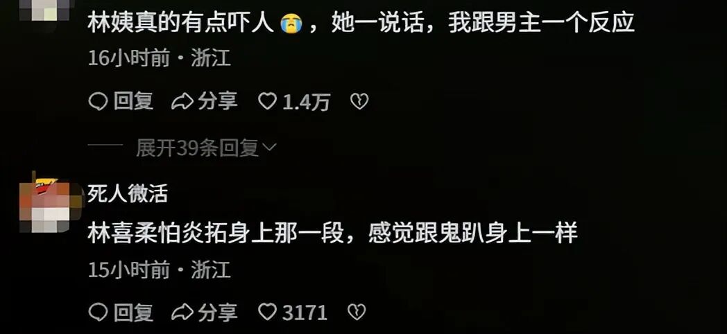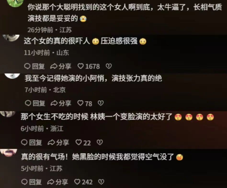 “张俪演的太有压迫感了”、“张俪太适合林姨了”。